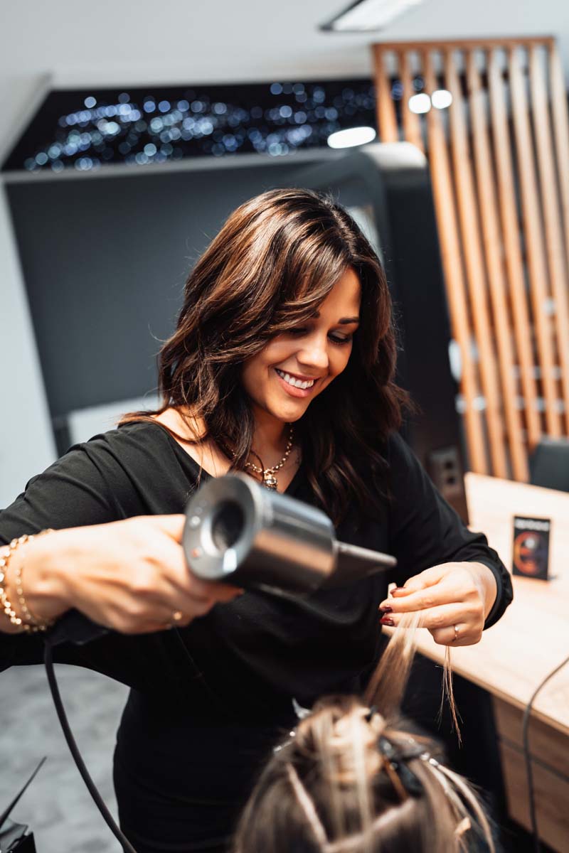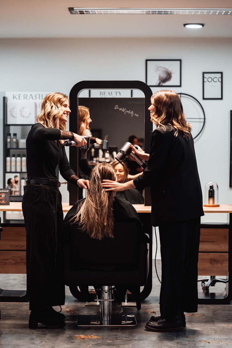 Für dich bedeutet das: Haare, die sich nicht nur gut anfühlen, sondern auch gesund aussehen. Auch nach deinem Termin. Auch im Alltag. Wir wählen jede Pflege bewusst aus – abgestimmt auf dein Haar. Damit du langfristig etwas davon hast.