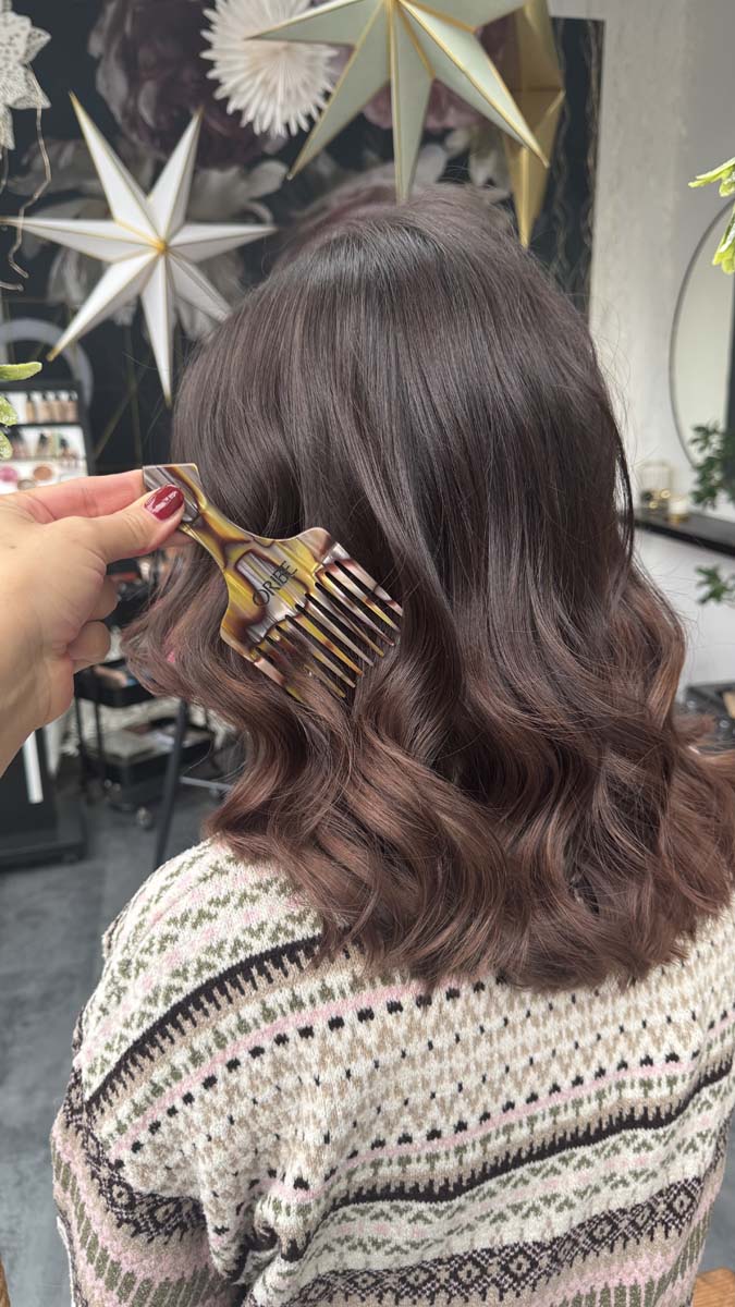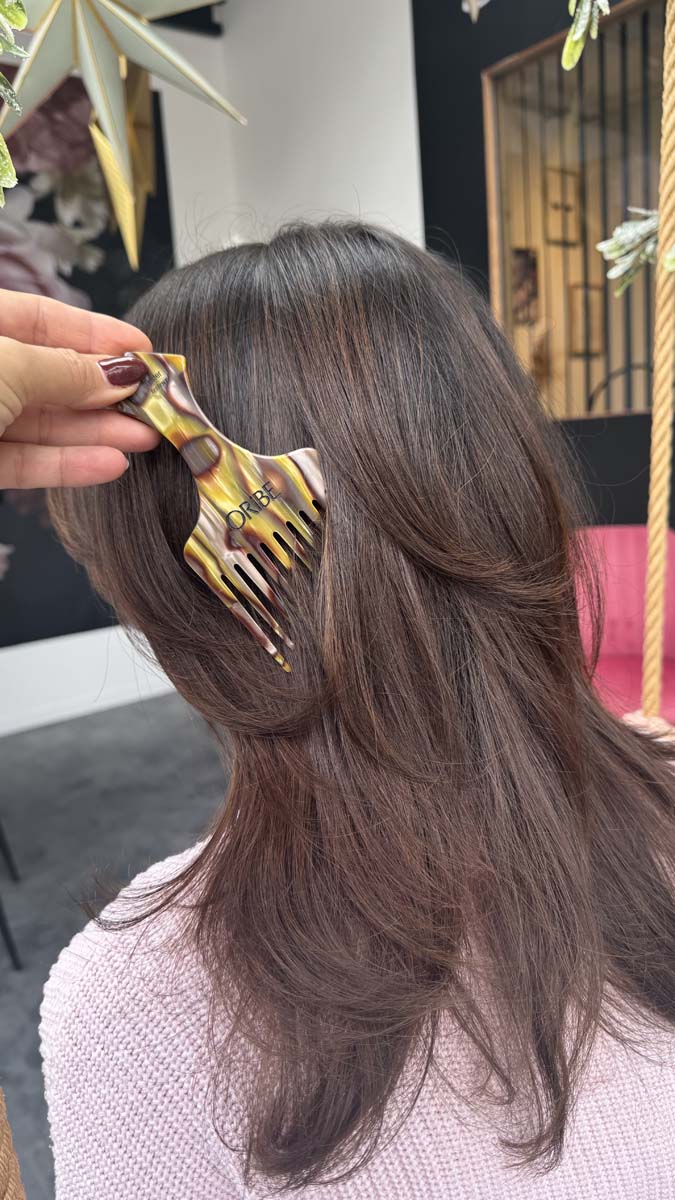Deshalb arbeiten wir mit ORIBE – einer Marke, die du nicht überall findest. Diese Produkte stehen für Qualität, Innovation und echte Ergebnisse. Sie pflegen dein Haar intensiv, stärken die Struktur und sorgen für Glanz, ohne zu beschweren.